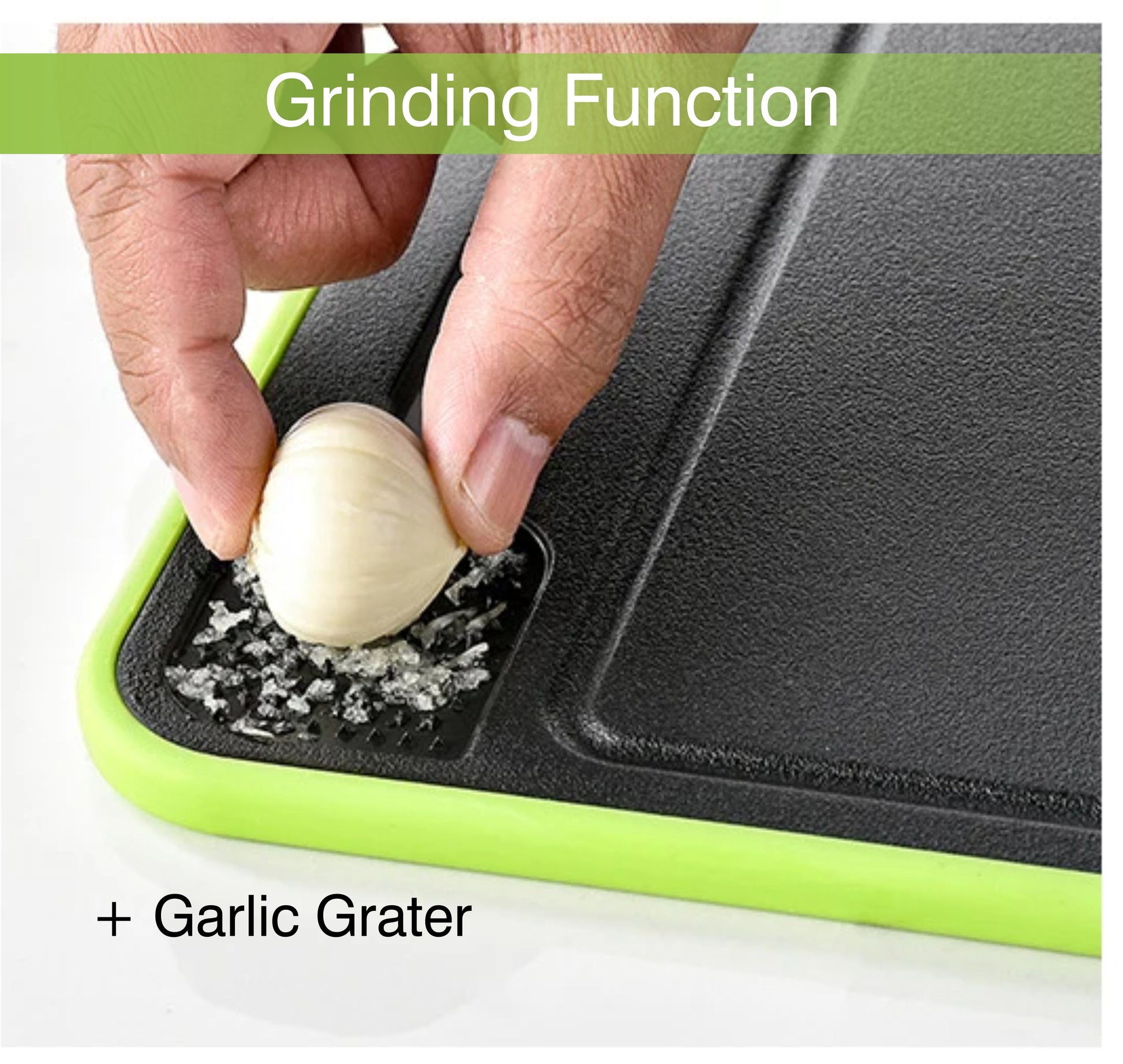 + 4-in-1 multifunctional design: defrosting tray, cutting board, knife sharpener, and garlic grinder