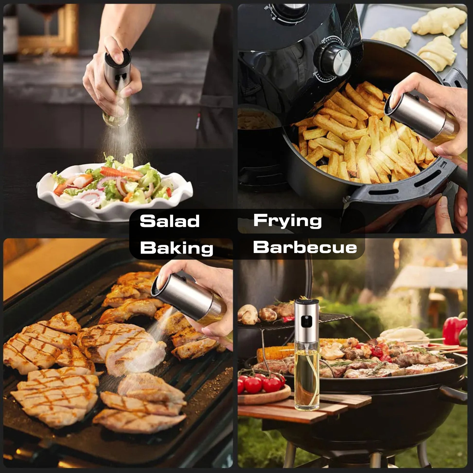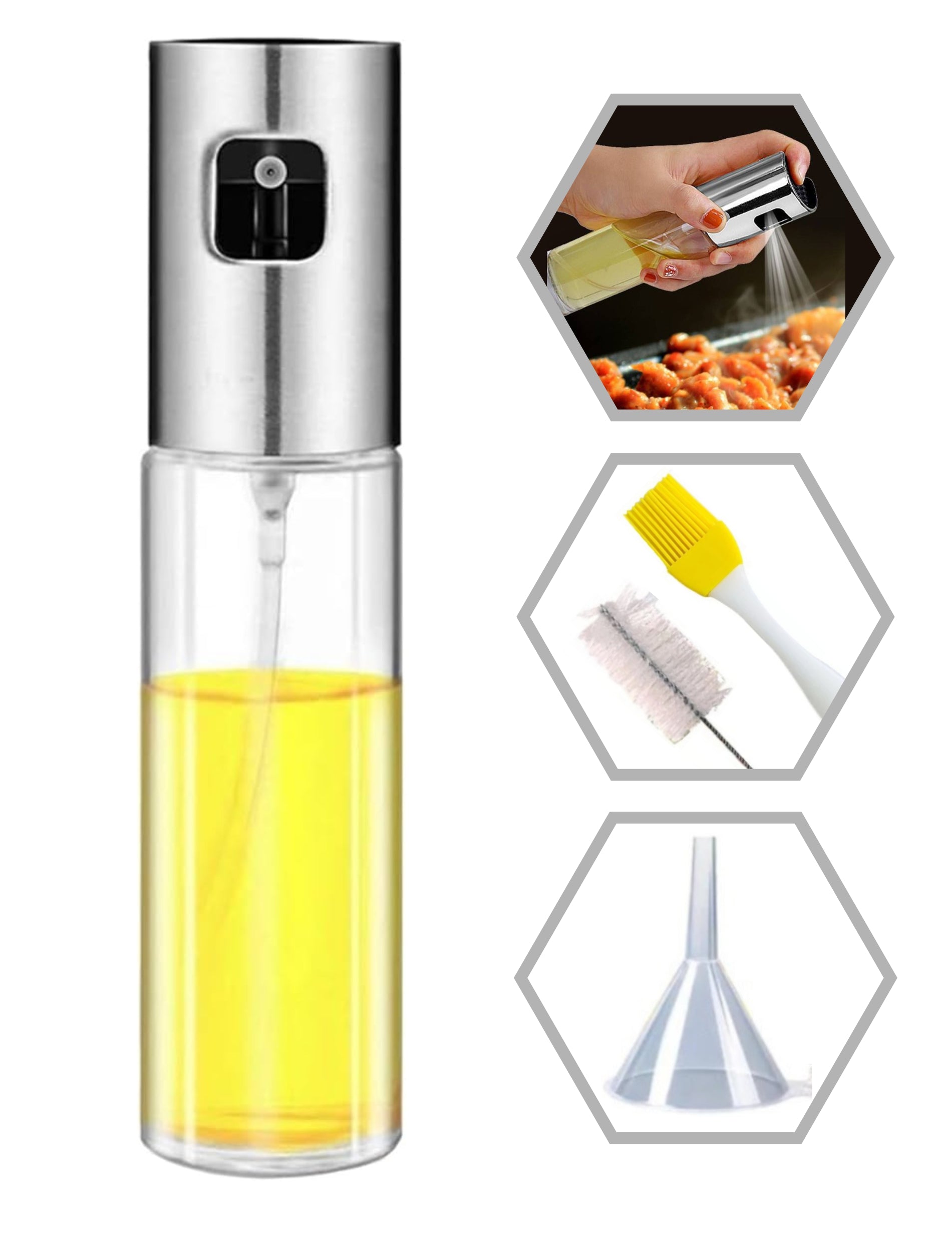 +Elevate your cooking with the Stainless Steel Oil Sprayer, expertly designed for healthier, precise oil control: Crafted from premium 304 stainless steel and BPA-free borosilicate glass, this durable and food-safe mister delivers a fine, even mist with every press, helping you reduce oil usage without sacrificing flavor.